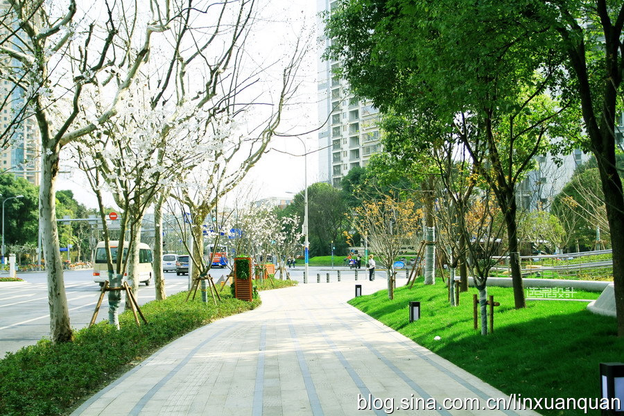 將傳統(tǒng)的直線人行道設計改為曲直結合的設計,即將筆直的市政人行道變成綠化帶里的曲折有致休閑步道。