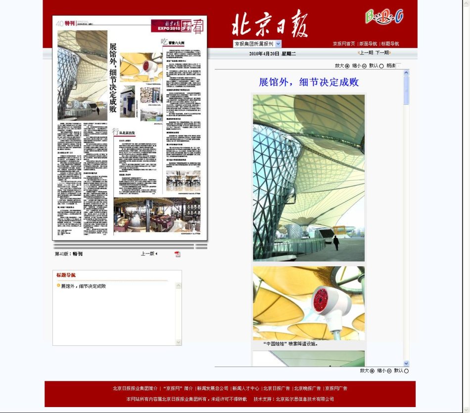 ??世博會開幕前夕,浦東園區(qū)的場地公共空間總設(shè)計師林選泉仍天天在園區(qū)里轉(zhuǎn)悠著,他面臨的巨大挑戰(zhàn)是:不能讓游客被太陽曬著,不能讓他們找不到路,甚至不能讓他們被蚊子咬了。游客的吃喝拉撒,都跟設(shè)計息息相關(guān)。