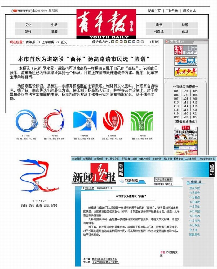 本市首次為道路設(shè)“商標(biāo)”楊高路請(qǐng)市民選“臉譜”