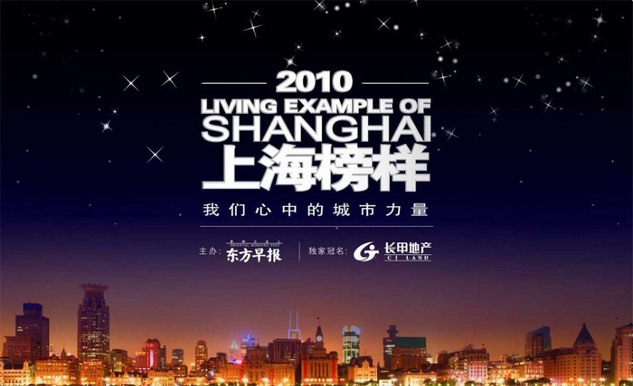 《2010上海榜樣》活動(dòng)由東方早報(bào)和長甲地產(chǎn)品牌聯(lián)袂推出,旨在通過讀者和市民投票、在侯選范圍中以票數(shù)選出今年對(duì)上海影響最深遠(yuǎn)的人物、事件或地標(biāo)等。