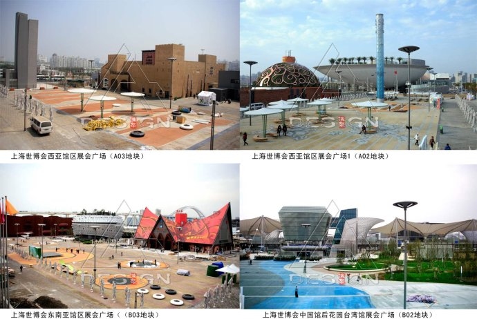 寧中意:在世博場地林選泉BC片區(qū),各個(gè)國家館根據(jù)地理位置分布,每個(gè)洲都有自己的主題廣場,這幾大廣場通過哪些設(shè)計(jì)語匯來體現(xiàn)各自特色的呢?