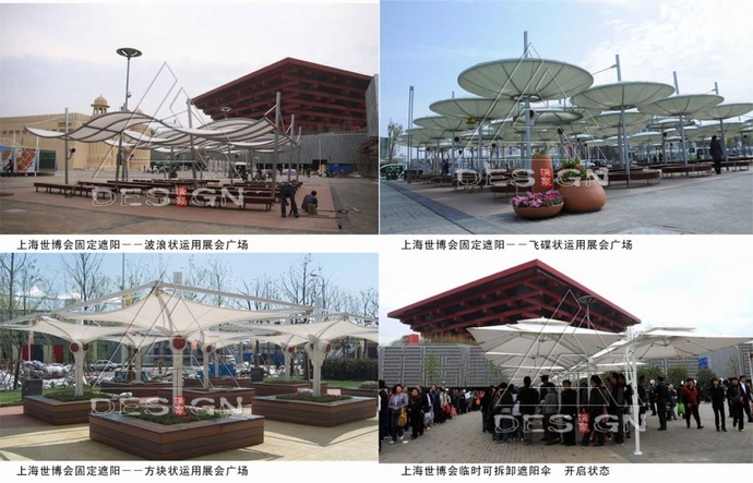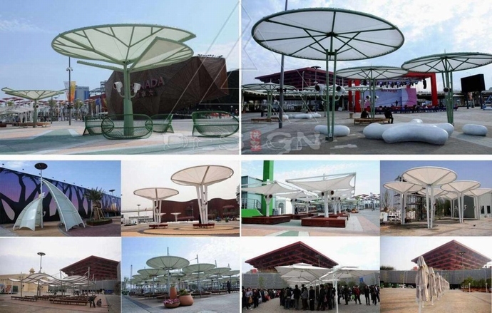 林選泉:世博公共空間將容納巨大人流,遮陽避雨設(shè)施需求量大;場地空間復(fù)雜、配套設(shè)施多且邊界條件不斷變化,因此,需要統(tǒng)籌系統(tǒng)布局遮陽設(shè)施;在滿足遮陽基本功能的前提下實(shí)現(xiàn)技術(shù)與藝術(shù)的融合。