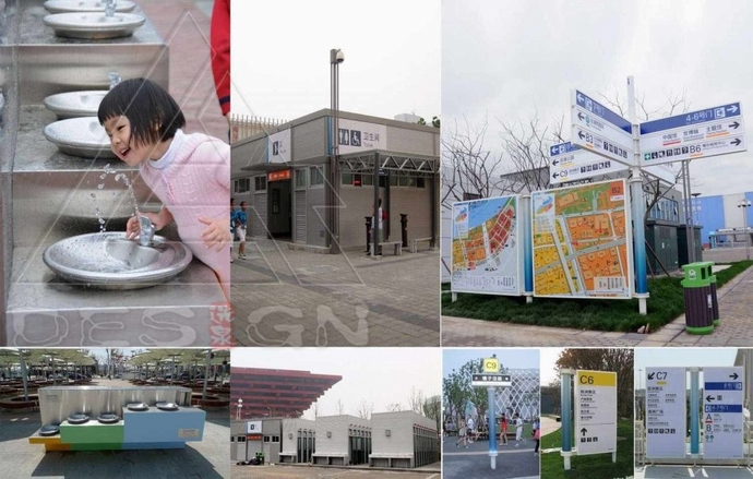 世博公共空間設(shè)計(jì)是一項(xiàng)綜合性極強(qiáng)的工作,除了場地設(shè)計(jì)本身外,設(shè)計(jì)師還要細(xì)致地考慮參觀人流的停留休息、飲水、就餐、如廁、信息獲取等要素,從方便和人性的角度來合理安排必需的公共設(shè)施。