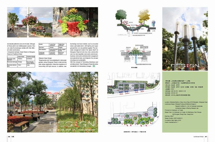 Shangnan Road is at the main entrance to Expo Axis. Management and utilization of rainwater is artfully incorporated into road greening renovation. The stormwater garden takes advantage of urban rainwater naturally, transforms wastewater discharged directly to sewers to a kind of resource that recharges groundwater, meanwhile creates a kind of attractive street landscape and green urban space. Finally it improves natural environment and well connects communities, schools, parks and commercial districts along