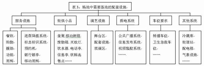 表3:場(chǎng)地中需要落地的配套設(shè)施
