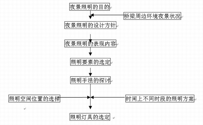 “安全、適用、經(jīng)濟(jì)、美觀”是建筑照明裝置設(shè)計(jì)的基本原則。橋梁夜景照明設(shè)計(jì)要遵循建筑照明設(shè)計(jì)原則,形成正確的燈飾夜景和照明系統(tǒng)設(shè)計(jì)原則,充分應(yīng)用各種設(shè)計(jì)要素和表現(xiàn)手法,用科學(xué)系統(tǒng)的設(shè)計(jì)程序進(jìn)行燈飾夜景照明和道路交通照明設(shè)計(jì)以取得預(yù)期的夜景效果。