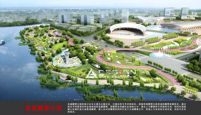 變更傳統(tǒng)雕塑園構(gòu)建形式,將雕塑有機(jī)融合環(huán)境,結(jié)合地形生成大地雕塑,以五大洲為主題劃分友好城市展示區(qū)域,在雕塑游賞中融入商業(yè)休閑空間,實(shí)現(xiàn)人與雕塑的互動(dòng)交流、自然與藝術(shù)的一體化。
