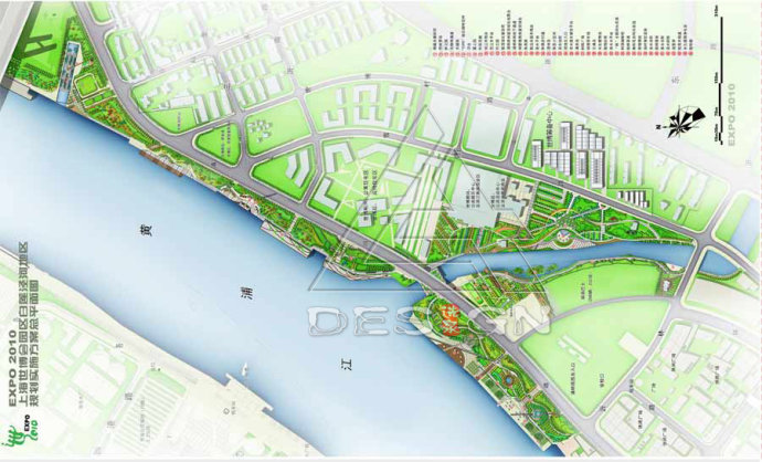 設(shè)計(jì)中著重解決了8大問題:防洪與親水游憩的問題、世博舉辦期間夏季高溫與防暑降溫的處理、場外的交通疏散功能問題、場地的歷史文脈延續(xù)的問題、會(huì)展期間與后續(xù)利用問題等。