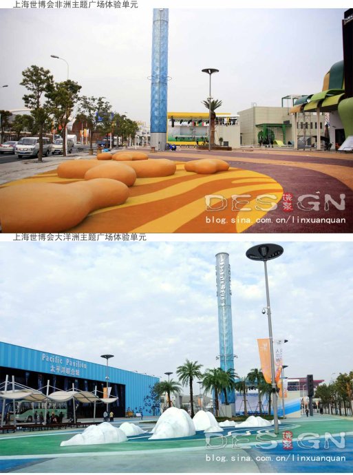 此外,室外場地基本以平地為主,盡量減少高差,基本不設水體。場地廣場上的許多設施如休息坐凳,樹箱綠化,一般廣場表演舞臺,臨時遮蔭、移動廁所等盡量采取可移動和可快速裝卸的特點,以應對臨時場地巨大人流的挑戰(zhàn)需求。