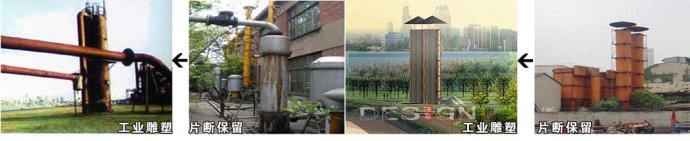 Due to the characteristics of the original industrial base, some structures which are of industrial characteristics can be found in the Expo site such as the chimney of the industrial age, some industrial components in the substation. This kind of structures can be retained and processed into industrial sculpture.