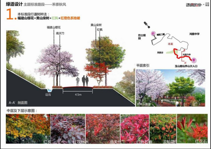 通過(guò)選擇具有地域性特色的山櫻花以及色葉植物黃山欒樹(shù),
