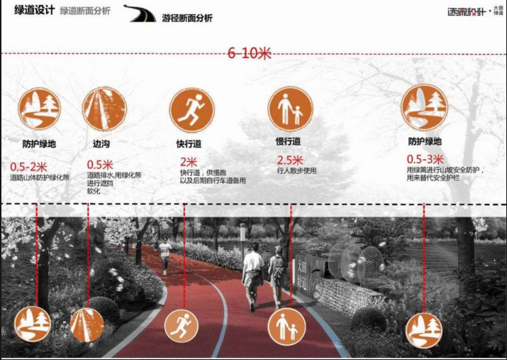 總長(zhǎng)度為6.1Km,路幅寬4.5米,其中新建綠道2.3公里。