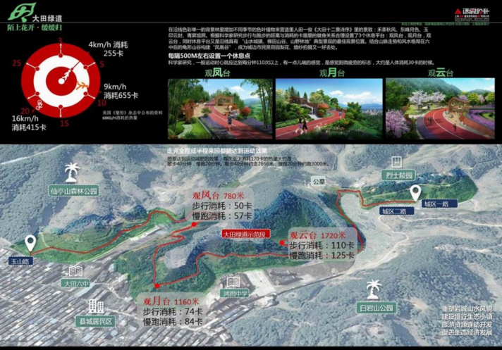 大田縣城綠道示范段西起仙亭山公園玉山路段東至白巖山公園城市二路交叉口,