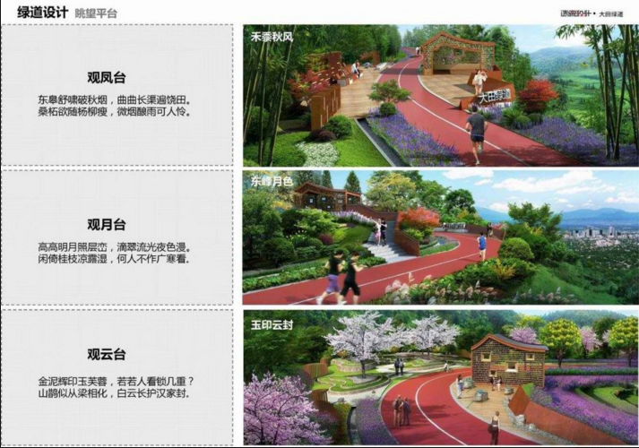 在城邊街頭的梯田山地設(shè)置大田綠道出入口驛站,
