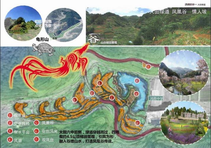 結(jié)合山脈走勢(shì)和風(fēng)水格局在六中后的龜形山谷構(gòu)建“鳳凰谷”,