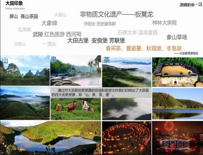 ?? 大田處于國(guó)內(nèi)生態(tài)環(huán)境最為優(yōu)越、地貌景觀最為豐富的福建省中西部,境內(nèi)有豐富的自然景觀和人文景觀,主要體現(xiàn)在“山、水、泉、茶、堡、臺(tái)”六字上,形成“春采茶、夏避暑、秋觀堡、冬泡泉”等四季鮮明的景色。大田地形特征明顯,自然實(shí)體為“九山半水半分田”。
