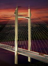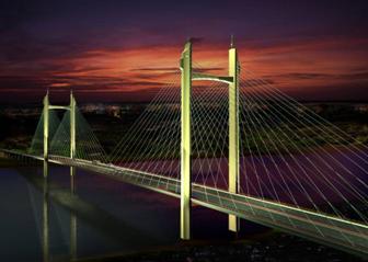 夜景照明中表現(xiàn)斜拉橋構造上的藝術美,用光強調結構特性,如: 橋塔的高聳挺拔,夜景照明中體現(xiàn)其力量緊張感,拉索的秀麗柔美,蘊含著“心理誘引力線 ”,夜景中體現(xiàn)輕紗般的透明感。