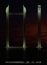 松花江大橋位于松花江干流中流,哈爾濱江段,是哈爾濱繞城高速公路(四方臺處)的一個重要組成部分。為雙面雙索結合梁斜拉橋,主跨336米,有其自身的景觀性、象征性、文化性和旅游性,他的建成將添補國內在低溫地區(qū)建造特大斜拉橋的空白,他將成為新的沿江旅游景觀點,成為哈爾濱市具有標志意義的景觀大橋,隨著哈爾濱城市建設的發(fā)展,它將成為一座城市橋梁,對松花江大橋進行夜景景觀設計有著重要意義。
