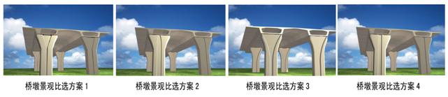 引橋橋墩必須具備安全可靠地傳遞和承受壓力以及承受風(fēng)力和防撞等功能。景觀設(shè)計(jì)中除考慮其功能、經(jīng)濟(jì)、施工技術(shù)、管理等因素外,還需考慮應(yīng)與上部鋼箱梁及周圍環(huán)境相協(xié)調(diào)。