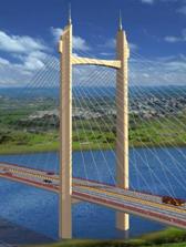 斜拉橋其剛度大、空氣動(dòng)力性能好,且簡捷流暢、連續(xù)舒展、輕巧纖細(xì)、、向上動(dòng)勢感強(qiáng),體現(xiàn)橋梁的現(xiàn)代美。它與懸索橋同屬懸吊式結(jié)構(gòu),在景觀特征上有共同之處,與其他橋型相比,都增加了塔和索的構(gòu)造,在空間構(gòu)圖上對單維突出的水平大梁起到了協(xié)調(diào)比例的作用。斜拉橋橋型景觀主要是以豎直線的橋塔、斜直線的拉索、拱曲線的主梁等為主基調(diào),斜拉橋的橋體景觀印象中,是以剛性的美為審美主格調(diào)。斜拉橋的橋塔、主梁、拉索、橋墩等橋梁主體結(jié)構(gòu)構(gòu)件的景觀設(shè)計(jì)是橋梁(總體)景觀設(shè)計(jì)的重要組成部分,影響著橋梁整體風(fēng)格和形象。
