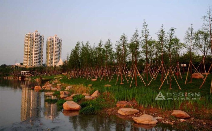 設(shè)計“自然之道”這一設(shè)計理念受到道教文化的啟發(fā),但是這種啟發(fā)不能僅僅提留在關(guān)注道教文化的表層,而是將這種文化精髓物化成空間載體,體現(xiàn)在場地設(shè)計中,順應(yīng)原有場地特征,公園原有南部是老碼頭棚戶區(qū),而到了北部則留有一定的灘涂地,設(shè)計總體風(fēng)格體現(xiàn)了人工與自然的融合,景觀形態(tài)剛?cè)岵?jì),從南到北實現(xiàn)了由人工向自然的逐漸演化和過渡,南段以硬質(zhì)的人工化景觀為主,北段以軟質(zhì)的自然景觀為主,表達(dá)了對地形以及原有植被的尊重(圖7)。